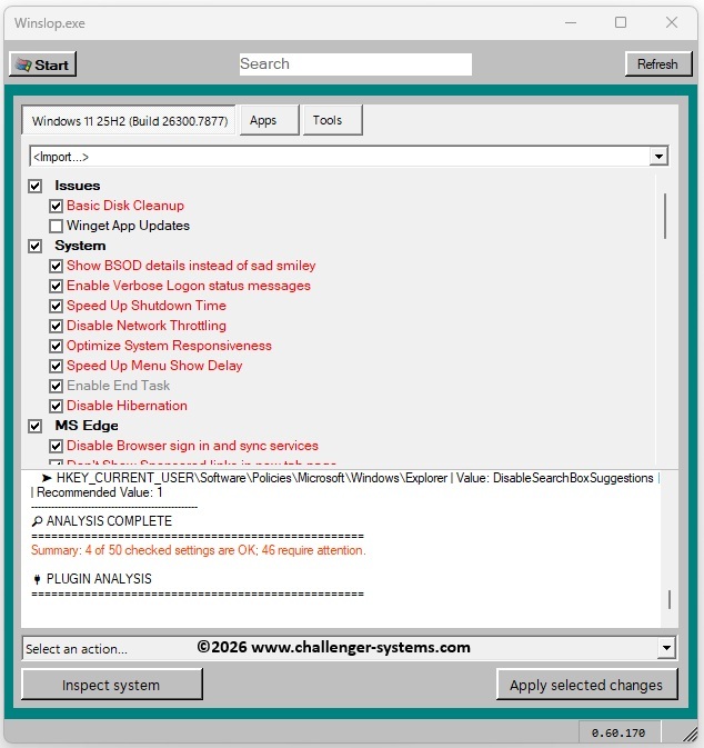 Winslop, développé par le créateur de Flyoobe , est un utilitaire Windows léger qui élimine les fichiers système inutiles, réduit leur poids et redonne à l'utilisateur un contrôle total. Version locale et optimisée de CrapFixer, Winslop affiche précisément les modifications qui seront apportées, permettant ainsi aux utilisateurs de les vérifier et de les annuler. Il fonctionne entièrement hors ligne, sans IA, sans cloud ni télémétrie. Idéal pour les utilisateurs souhaitant une expérience Windows plus épurée, transparente et minimaliste, Winslop simplifie la maintenance du système, optimise les performances et supprime les fonctionnalités imposées, opaques ou redondantes, tout en préservant l'intégrité de Windows.